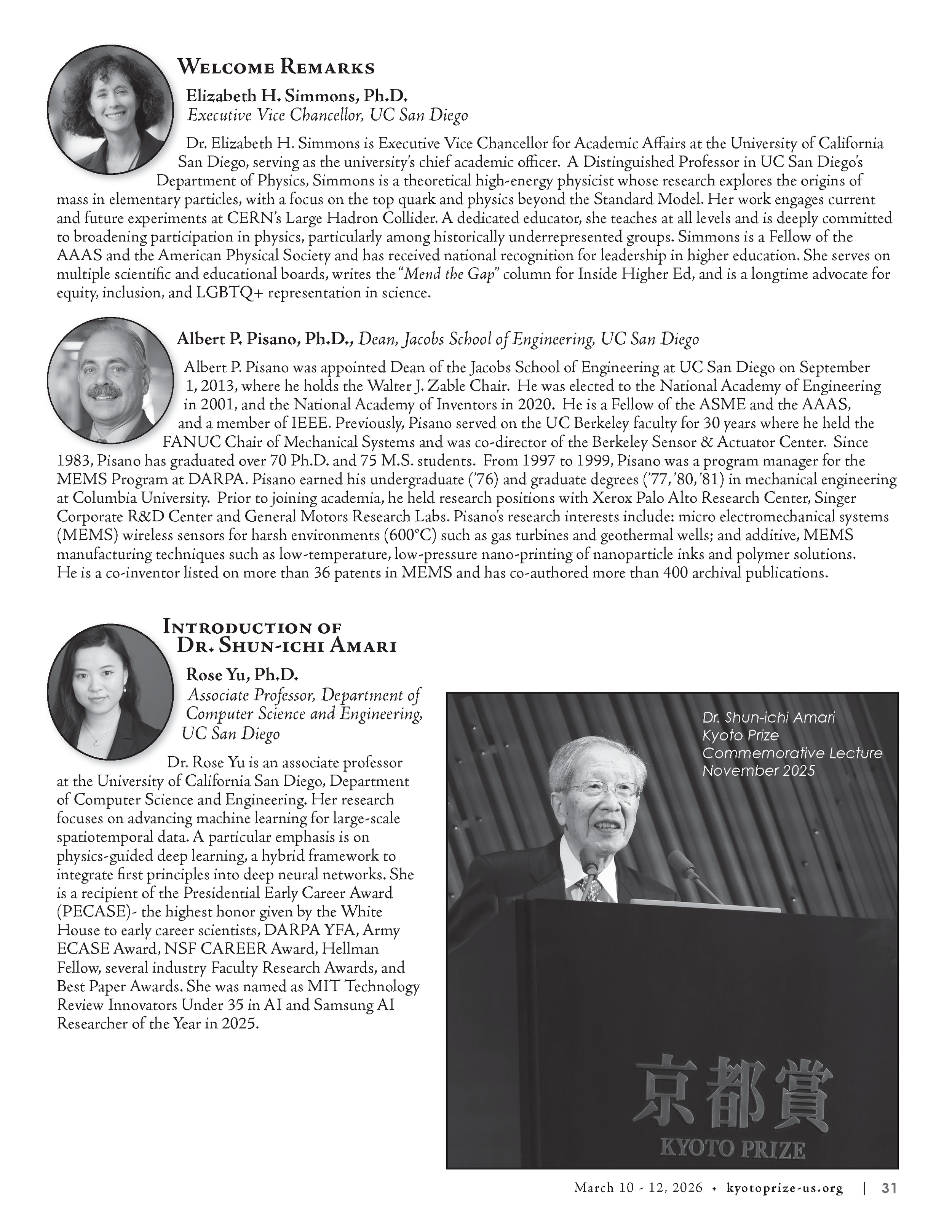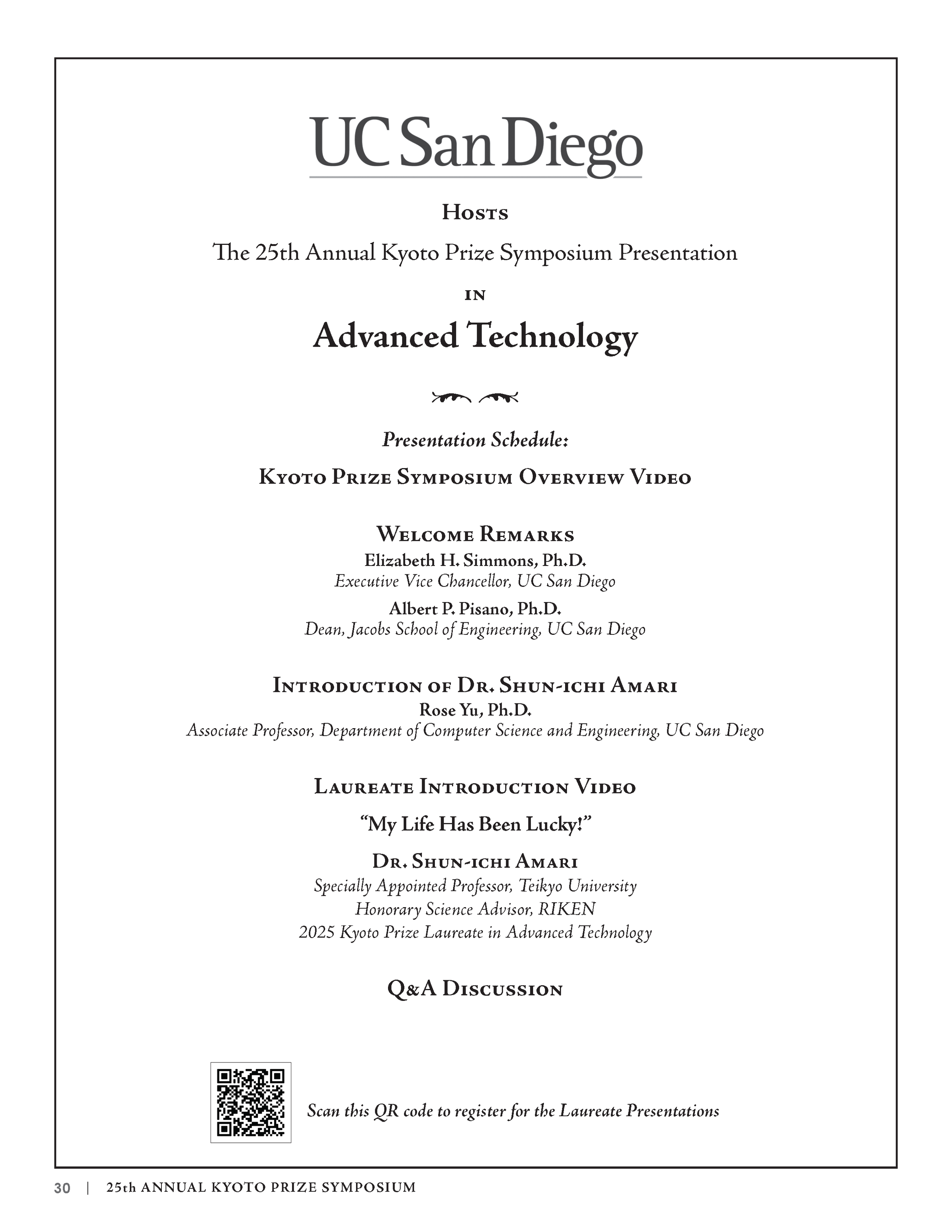 Dr. Shun-ichi Amari will be introduced by Prof. Rose Yu of UC San Diego.